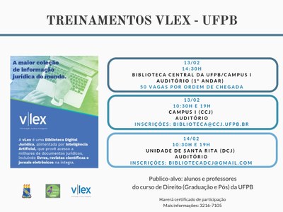 Inscrições – Treinamentos do CCJ: biblioteca@ccj.ufpb.br;