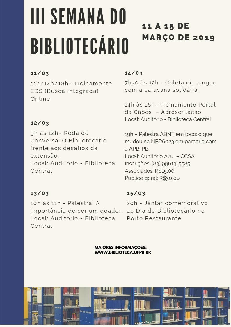 Confira a programação da III Semana do Bibliotecário, que encerra-se na sexta-feira (14).