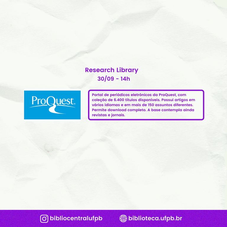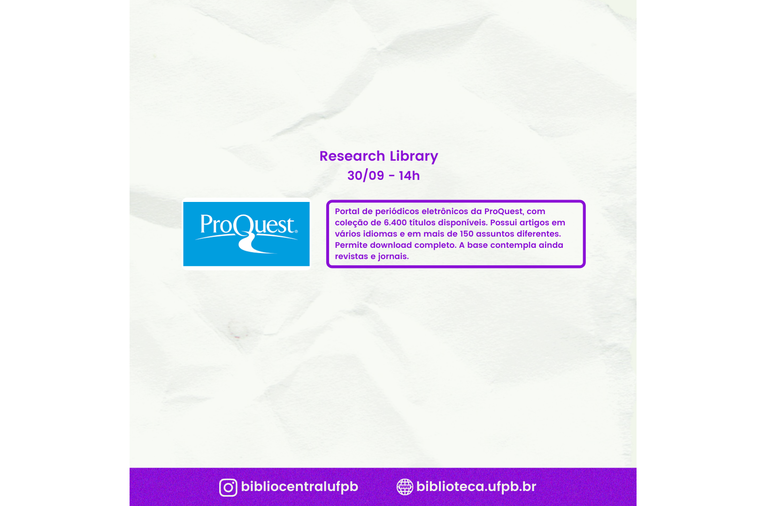 Capacitação da Research Library (ProQuest) terá início às 14h