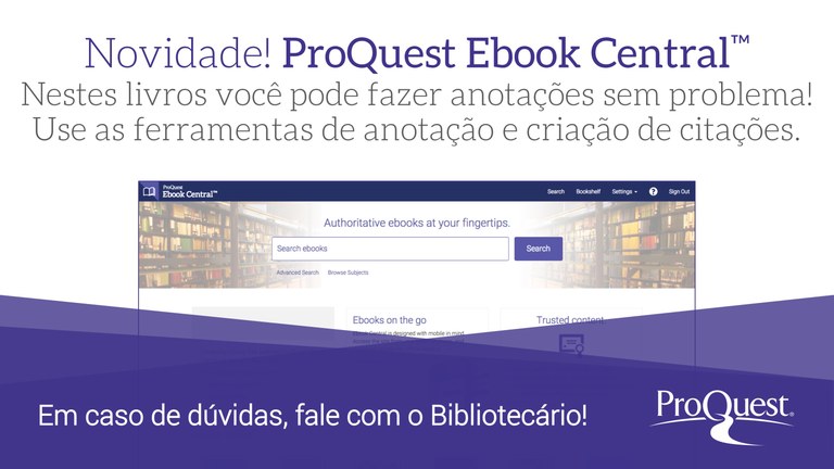 No próximo dia 11 de outubro a Biblioteca Digital a Ebrary migrará para a plataforma Ebook Central (EBC).