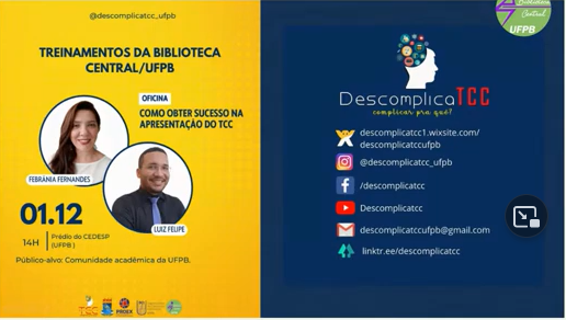 “Como obter sucesso na apresentação do TCC” é um projeto de extensão da UFPB