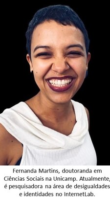 Fernanda Martins Sousa - Doutoranda em Ciências Sociais na Unicamp. Atualmente, coordena pesquisas na área de desigualdades e identidades no InternetLab.