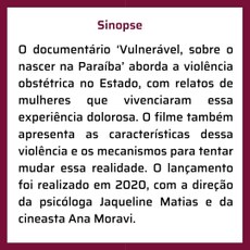 Em 2020, a psicóloga Jaqueline Matias lançou o documentário “Vulnerável, sobre o nascer na paraíba”, fruto da sua pesquisa de doutorado sobre a avaliação da assistência obstétrica na Paraíba. A direção do documentário foi realizada em parceria com a cineasta mineira Ana Moravi e está disponível no YouTube .