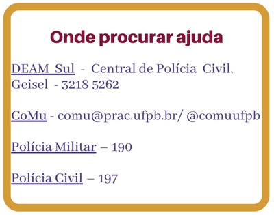 “A CoMu tem o compromisso de dar o suporte que as mulheres que estudam, trabalham ou convivem na UFPB necessitem em caso de violência. E nesse entendimento, já recebemos novas denúncias de violências via redes sociais, e também de violência física nesse momento de isolamento. Estamos fazendo o acompanhamento dessas mulheres e encaminhamentos para os demais serviços tanto da rede externa quanto interna da UFPB”, relata.