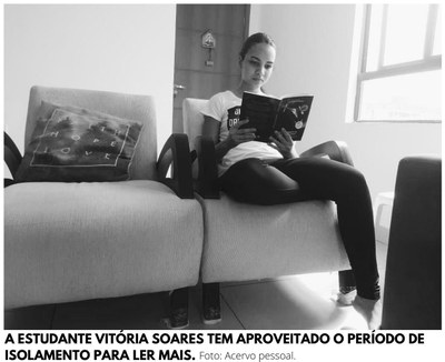 Ainda realizando atividades à distância, a estudante Vitória Soares busca manter a mente ocupada não só com as obrigações, mas também reservando um período para ler, assistir séries de TV e fazer exercícios: “No começo, eu me cobrava muita produtividade, mas depois de conversar com amigos e ver relatos de outras pessoas, eu comecei a compreender melhor sobre isso e não me cobro tanto, tento atender às demandas do estágio e das aulas sem muita pressão”.