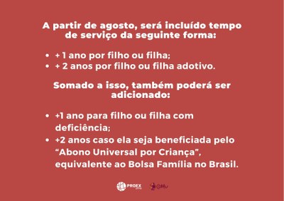 Se Dona Vera fosse uma mulher argentina e próxima a se aposentar, poderia somar ao seu tempo de serviço mais quatro anos pela criação dos seus filhos. Essa é uma conquista importante que tira da invisibilidade os cuidados maternais e reconhece as longas e múltiplas jornadas de trabalho das mulheres.