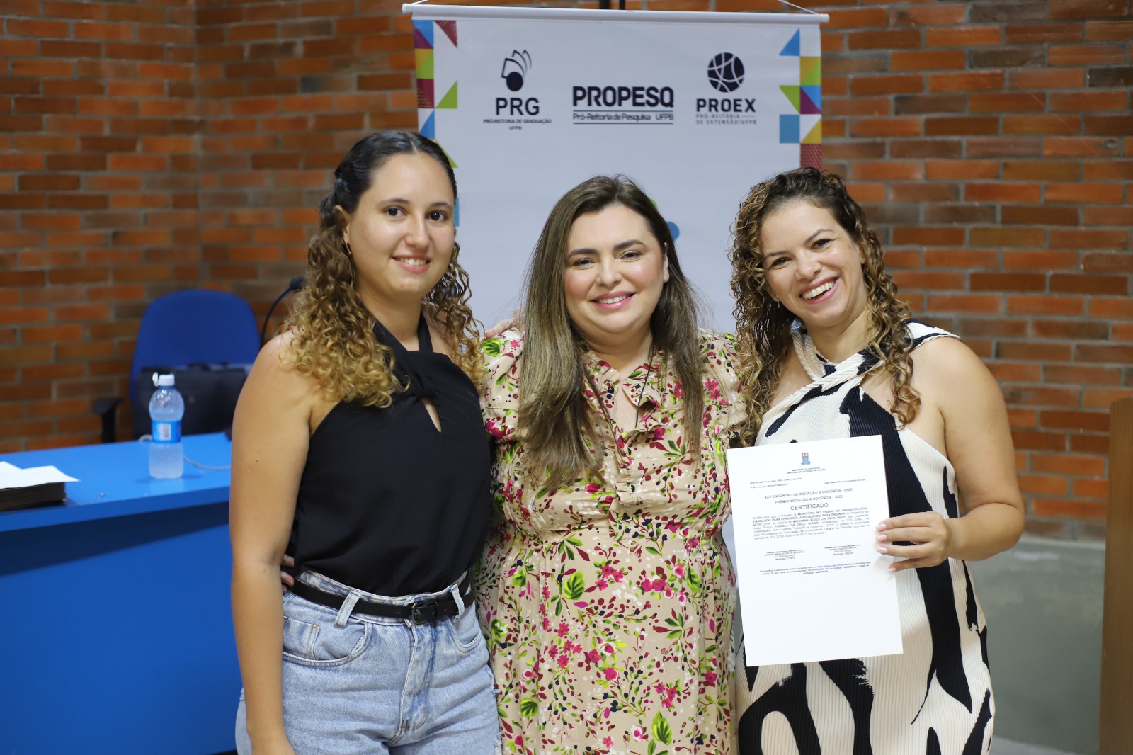 Bastante prestigiada pela comunidade acadêmica, a abertura do evento contou com a presença da Vice-reitora, professora Liana Filgueira, da Pró-reitora de Extensão (Proex), Berla Moraes, da professora Adriana de Abreu Mascarenhas representando a Pró-reitora de Graduação Silvana Carneiro Maciel (PRG), e da Coordenadora Geral de Programas Acadêmicos e Iniciação Científica, professora Maria de Fátima Vanderlei de Souza (Propesq), que integraram a mesa dos trabalhos.