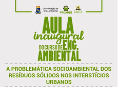 "A problemática socioambiental dos resíduos sólidos nos interstícios urbanos". Este é o tema da aula inaugural do período 2017.2 do curso de Engenharia Ambiental da Universidade Federal da Paraíba, que acontece no próximo dia 02 de março, às 8h00, no Auditório do Centro de Tecnologia, localizado Campus de João Pessoa.