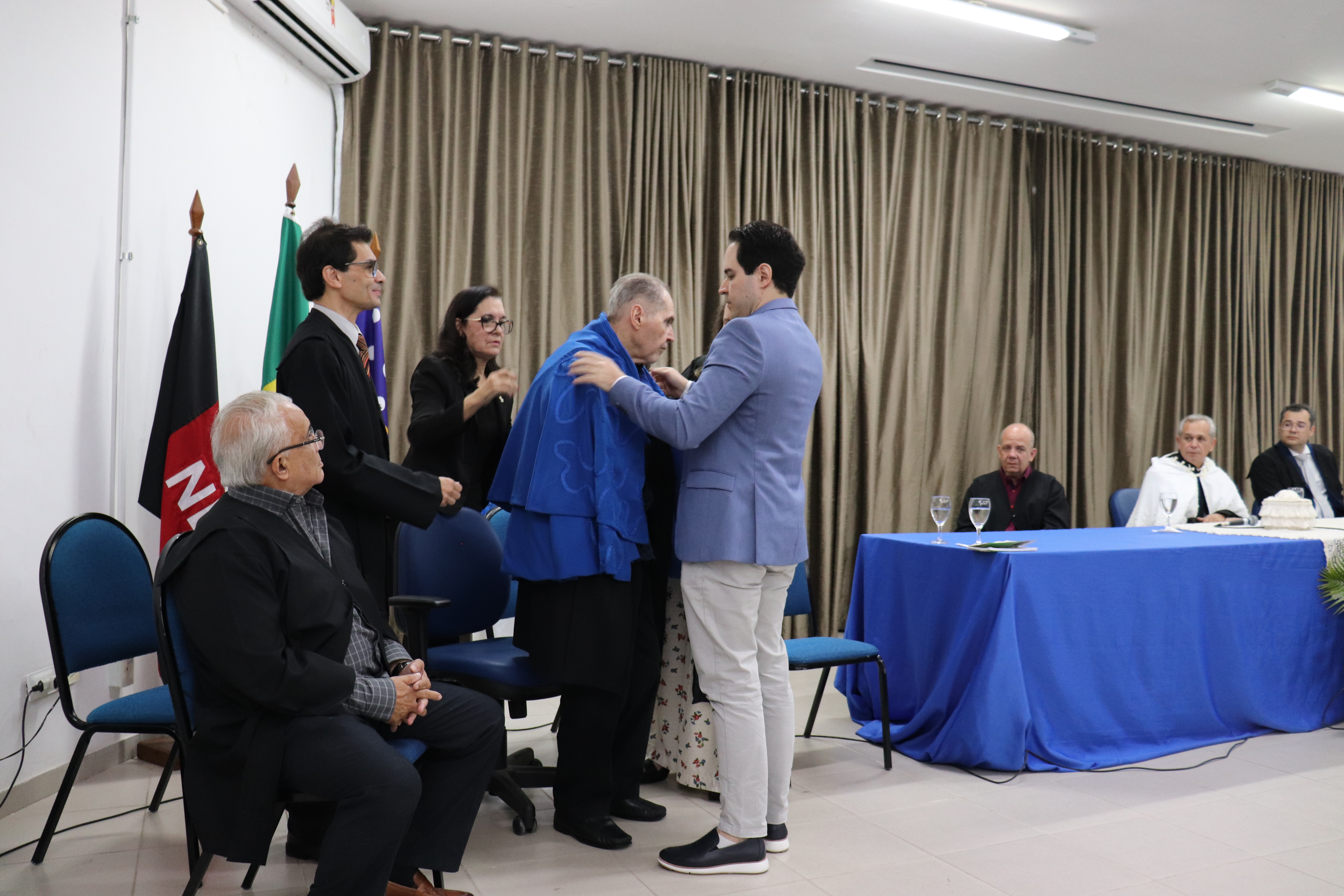 A cerimônia seguiu com os atos protocolares do rito universitário. Os professores Alysson André Cabral e Mercedes Cavalcanti realizaram a trasladação das vestes talares, simbolizando a concessão do título. Em seguida, o professor Alysson André Cabral, propositor do título honorífico, proferiu o tradicional panegírico, um discurso em exaltação ao agraciado. Ele destacou a paciência, humildade e dedicação do homenageado, que orientou gerações de economistas e se destacou no ensino da disciplina de técnicas de pesquisa em economia.