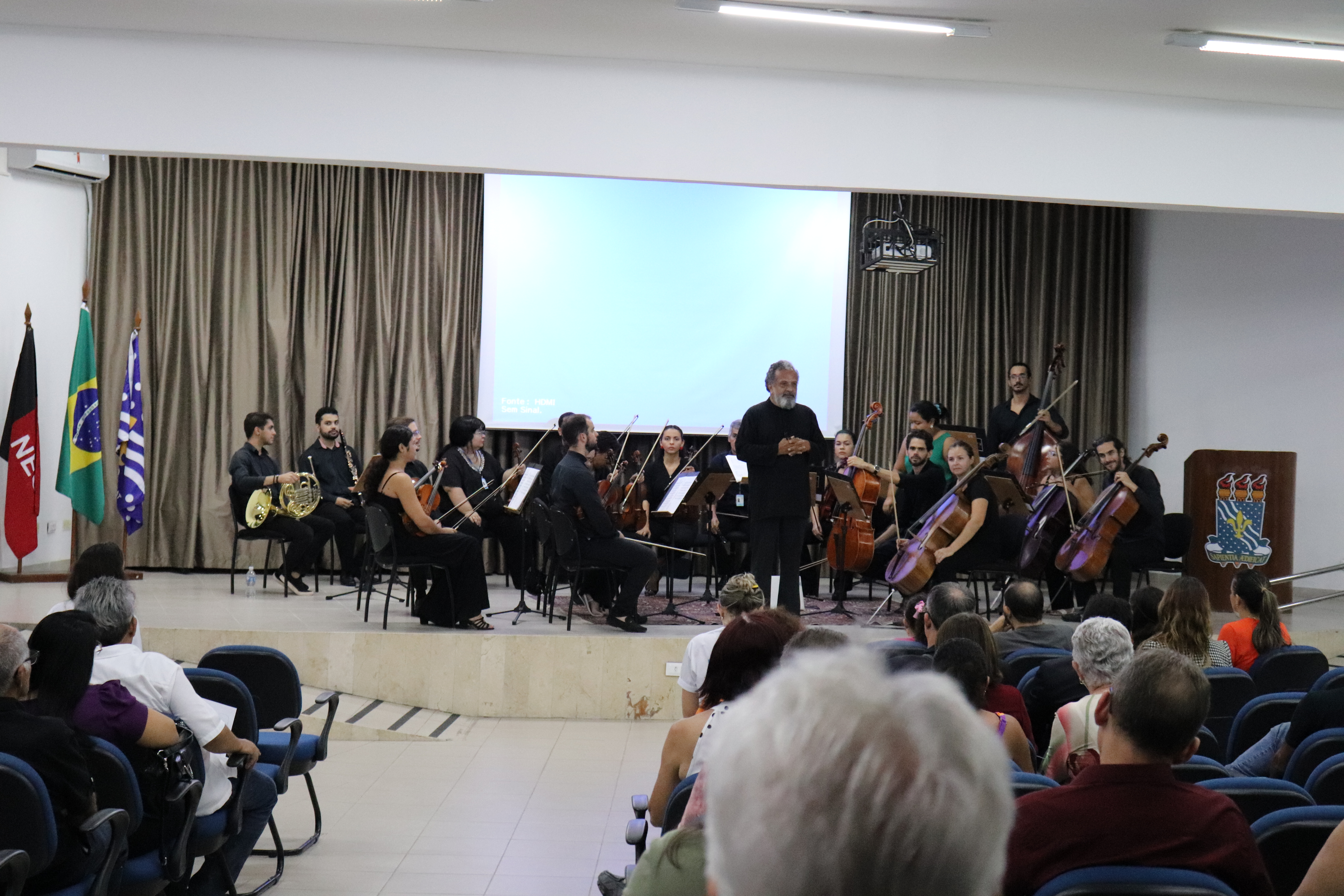 Também durante a manhã, no auditório da Reitoria, houve uma apresentação da Orquestra Sinfônica da UFPB, seguida de uma cerimônia de homenagem aos servidores da Universidade que já se aposentaram. Estavam presentes o Reitor, Prof. Valdiney Gouveia, a Pró-reitora da Progep, Profa. Rita de Cássia Pereira, o coordenador de Processos de Gestão de Pessoas da Progep Fagner Oliveira, e a coordenadora do Instituto Paraibano de Envelhecimento (IPE) da Universidade, Profa. Antônia Ieda Oliveira.