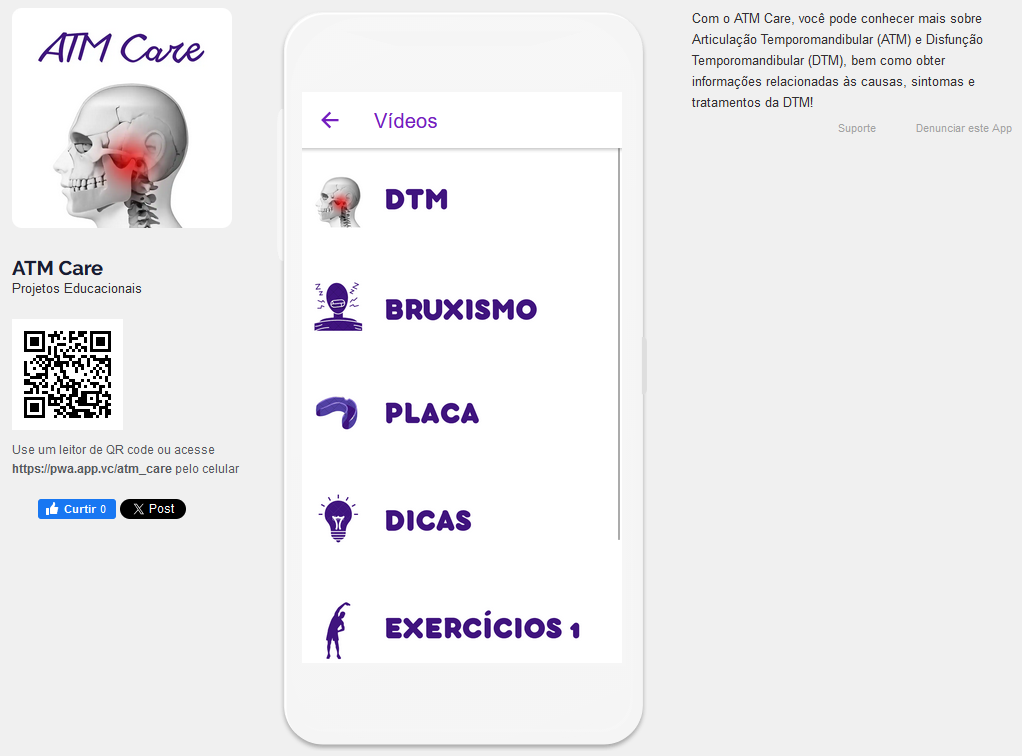O aplicativo utiliza linguagem simples e acessível para fornecer orientações importantes para auxiliar na prevenção e no manejo da condição, como: causas, sintomas e tratamentos da DTM, demonstrações de exercícios e orientação sobre cuidados diários para ajudar no controle e evitar a progressão da disfunção.