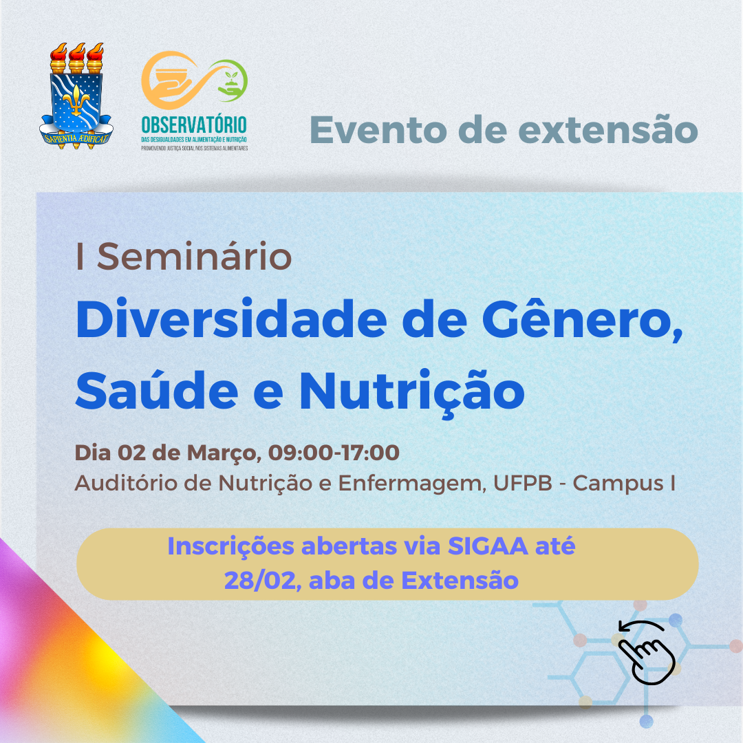 Inscrições abertas para 1º Seminário Diversidade de Gênero, Saúde e Nutrição na UFPB