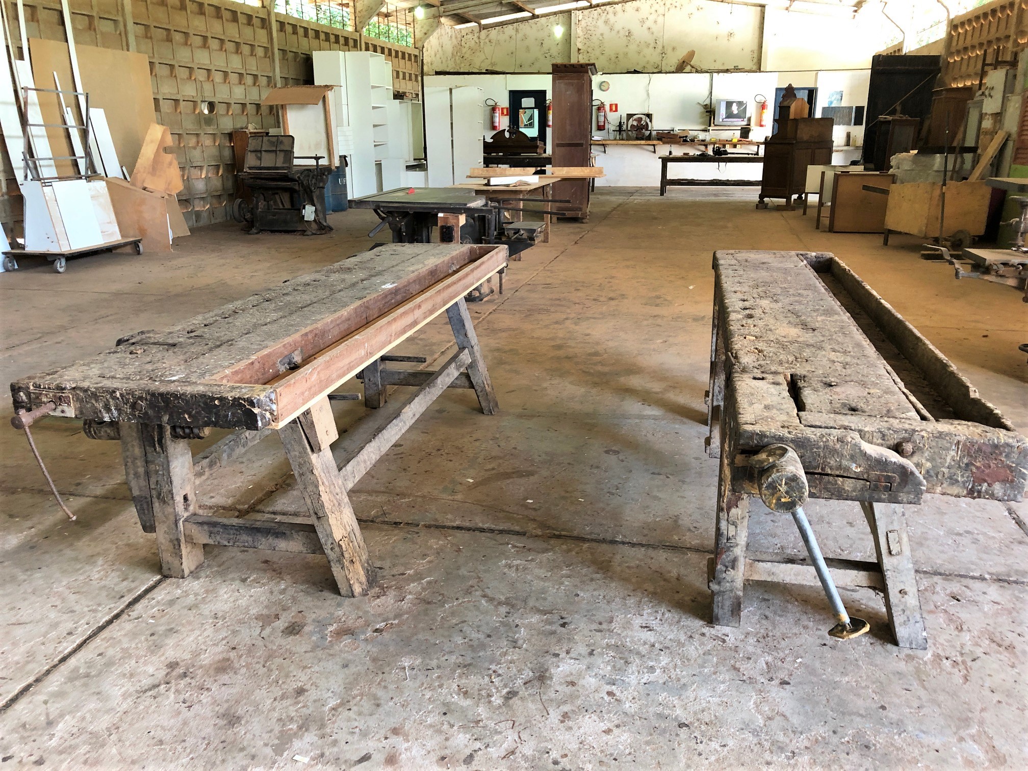 Além do maquinário que ainda funciona normalmente, a exemplo de uma plaina desempenadeira – ferramenta usada para deixar plana uma superfície de madeira –, há, no local, outra raridade com cerca de 100 anos de existência: dois bancos para trabalho dos marceneiros, feitos de madeira baraúna.
