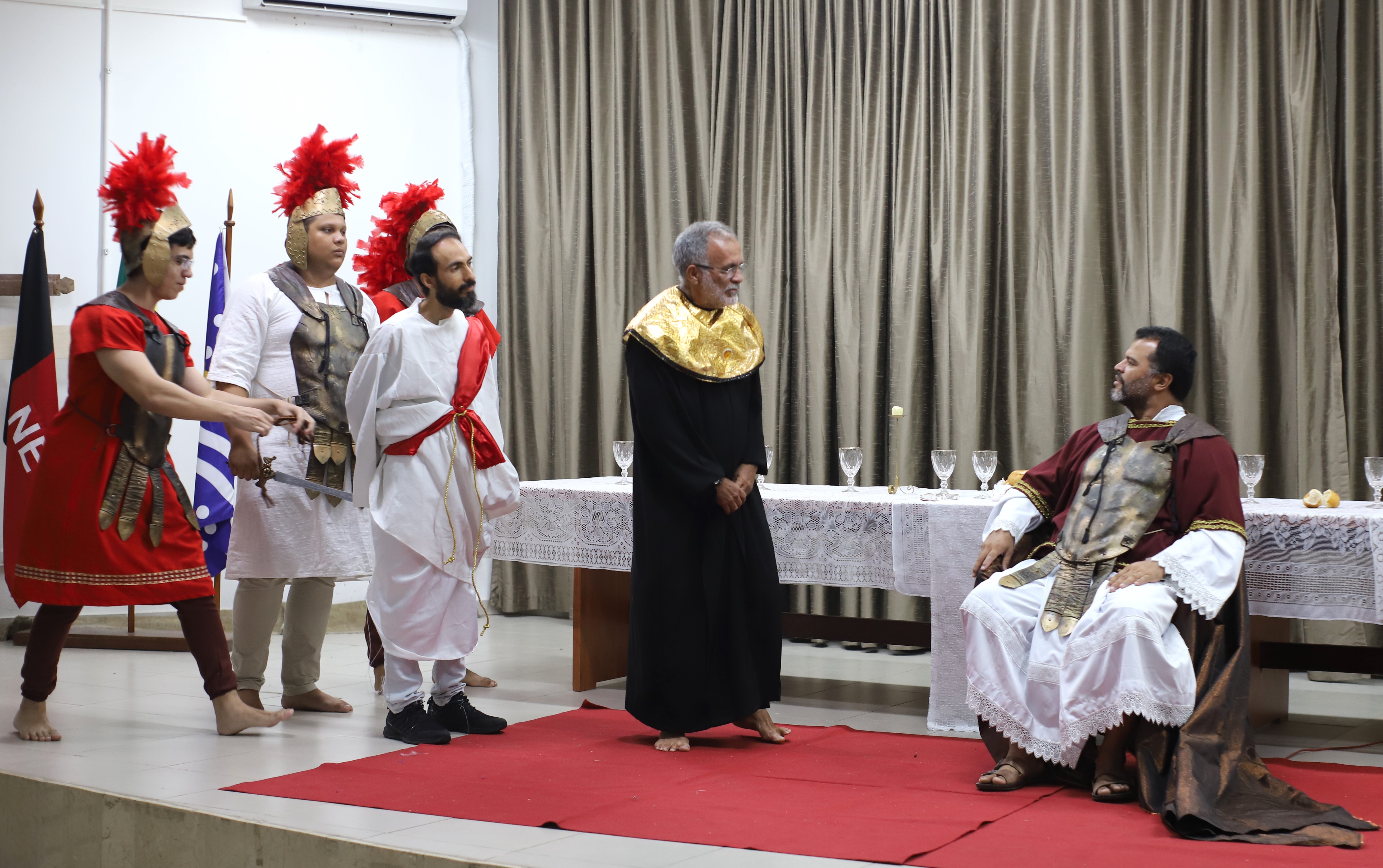 Este ano, a primeira produção foi a Paixão de Cristo, que contou com 35 participantes. Com texto adaptado de “Paixão de Cristo para crianças”, de Emílio Carlos, e “Paixão de Cristo: Na dor transpassada nasce a salvação” de Naíma Vilôr, trouxe a emoção da semana santa para o ambiente acadêmico.