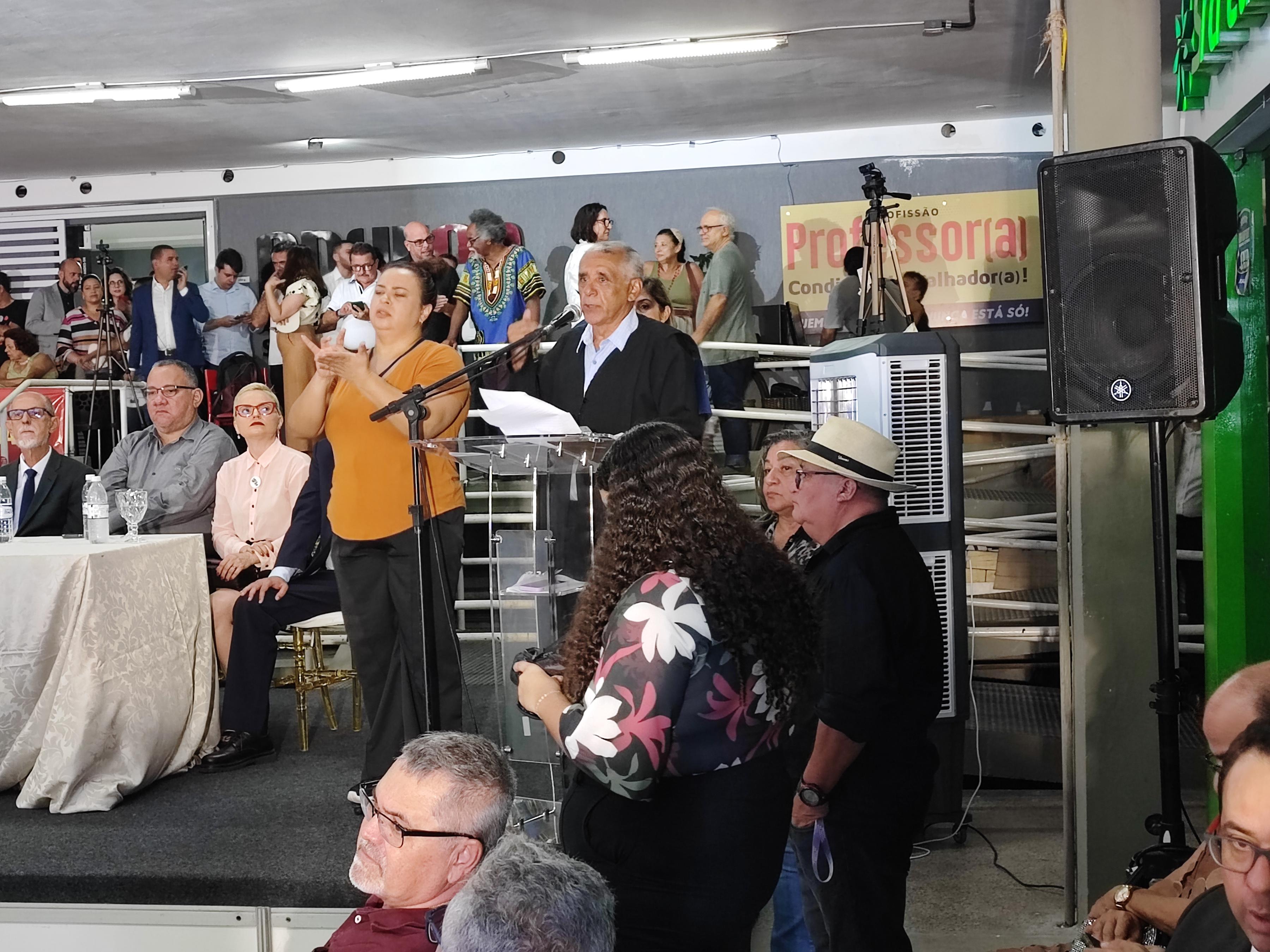 “Contem sempre comigo, assim como conto com cada um de vocês para cumprir essa missão que hoje se inicia e que honrarei durante todos os dias da nossa gestão. Por fim, eu queria lembrar do apóstolo da Igreja Católica, Dom Hélder Câmara, que um dia disse: ‘Quem não entende de chão humilde e de pedras duras, se engana pensando que entende as estrelas’. Eu já pisei no chão humilde e pedregoso. Quero agora entender as estrelas”, discursou a nova Reitora Terezinha Domiciano.