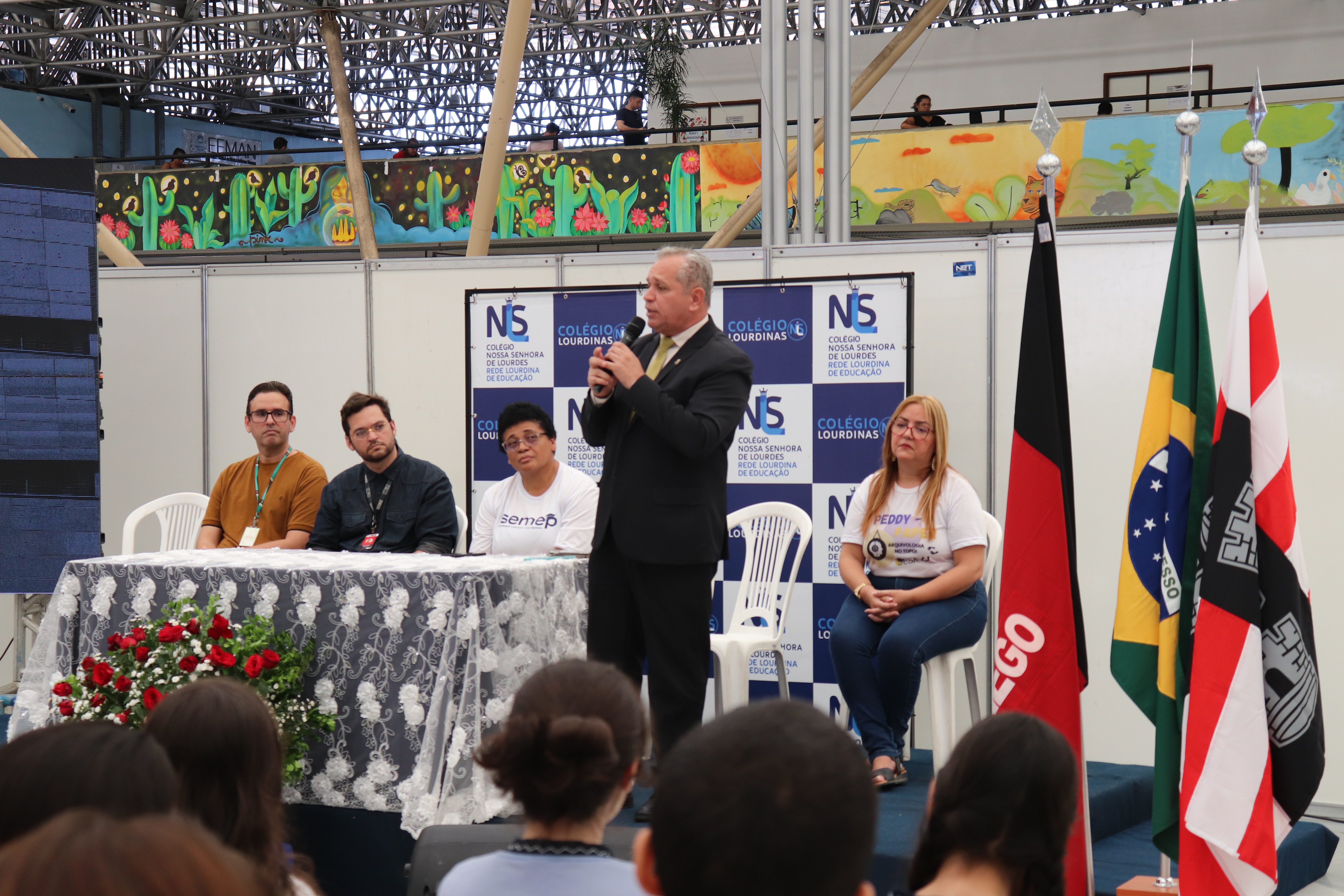 O Reitor da UFPB, Prof. Valdiney Gouveia, integrou a mesa de abertura do evento, ao lado de Elivânia Alves, diretora do colégio Lourdinas, e de representantes da Universidade Estadual da Paraíba (UEPB), do Instituto Federal da Paraíba (IFPB) e da Prefeitura Municipal de João Pessoa. Em sua fala, o Reitor destacou a grande quantidade e a diversidade dos cursos de graduação oferecidos pela UFPB.