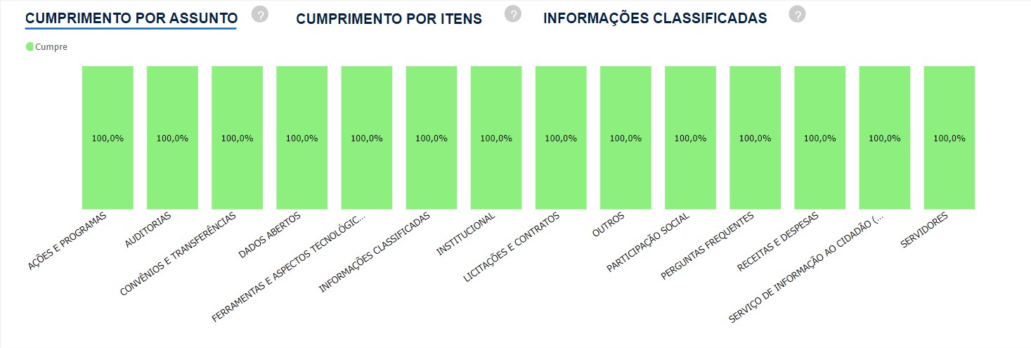 Os 49 itens de transparência ativa apresentados pela CGU no Painel da Lei de Acesso à Informação dos Órgãos e Entidades do Poder Executivo Federal estão sendo integralmente cumpridos pela UFPB. Essas informações abrangem diversos temas, como ações e programas, auditorias, licitações e contratos, convênio e transferências. O cumprimento dessas obrigações é monitorado continuamente para avaliar o grau de conformidade e o compromisso dos órgãos com a transparência ativa, de acordo com a LAI e as orientações estabelecidas no Guia de Transparência Ativa (GTA), elaborado pela CGU.